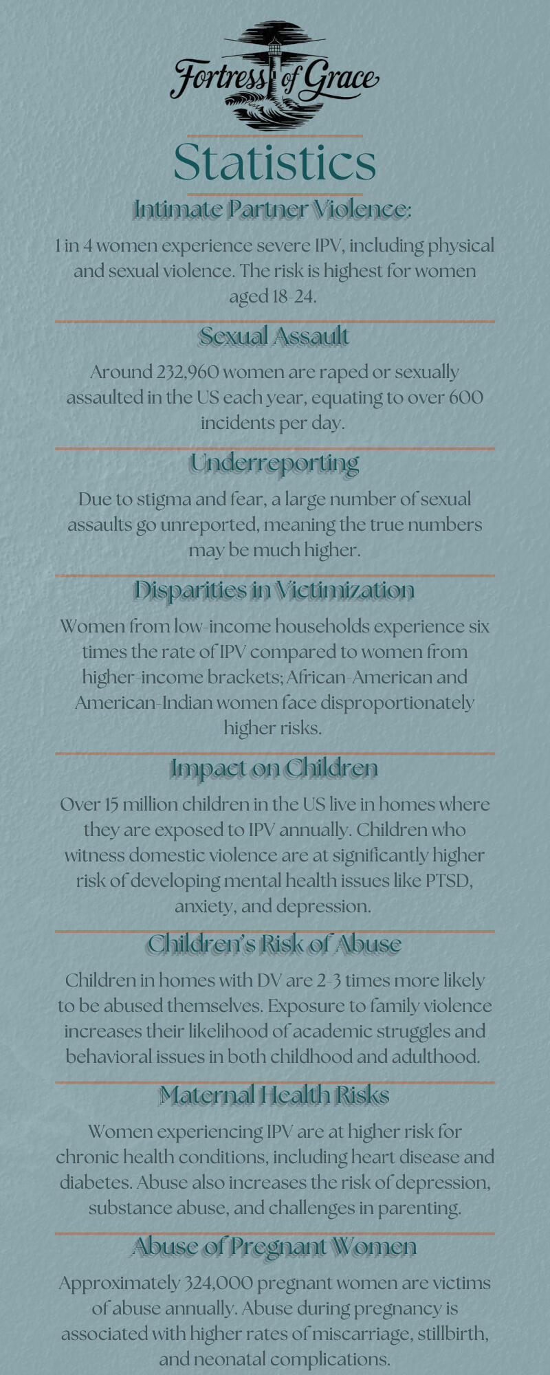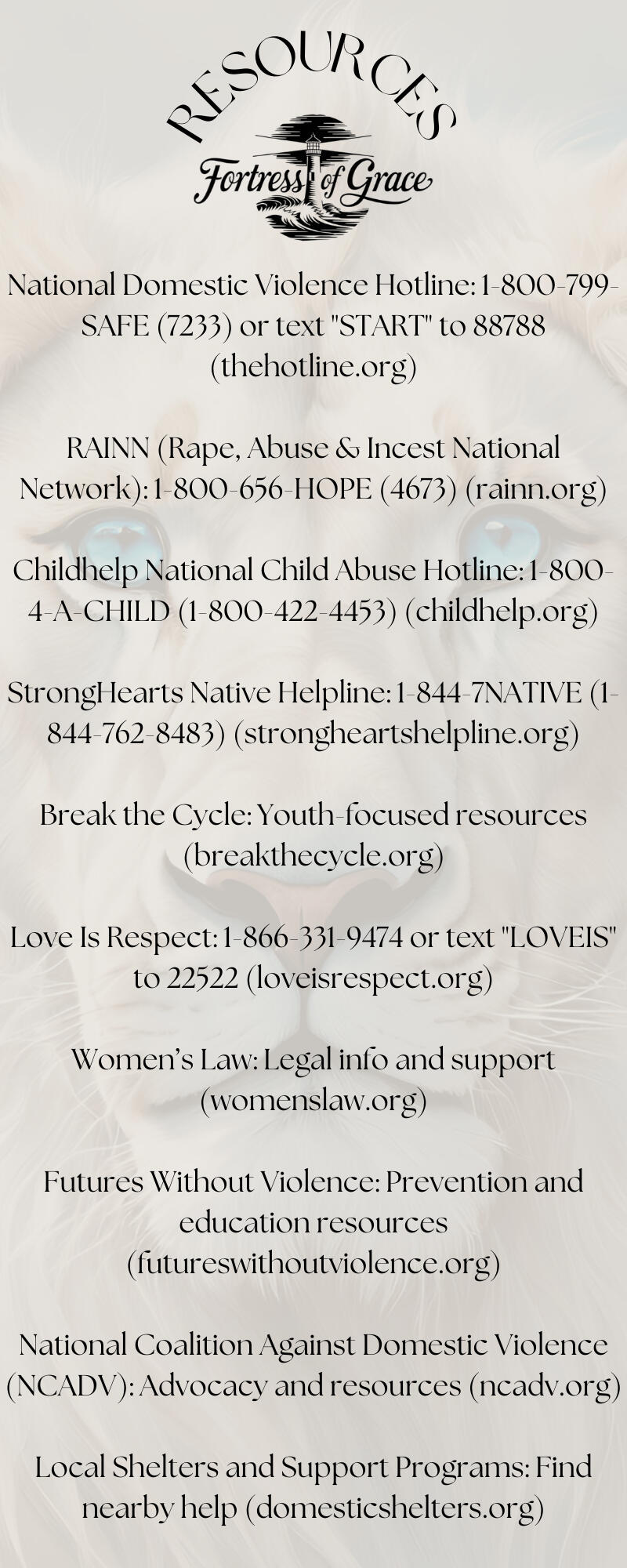 Fortress of Grace is a private, faith-based business dedicated to empowering women through educational self-defense programs. Our mission is to equip women with the knowledge and confidence to protect themselves, grounded in biblical principles of strength, grace, and wisdom. We offer comprehensive education focused on personal safety, awareness, and spiritual resilience, all within a supportive and faith-driven environment.